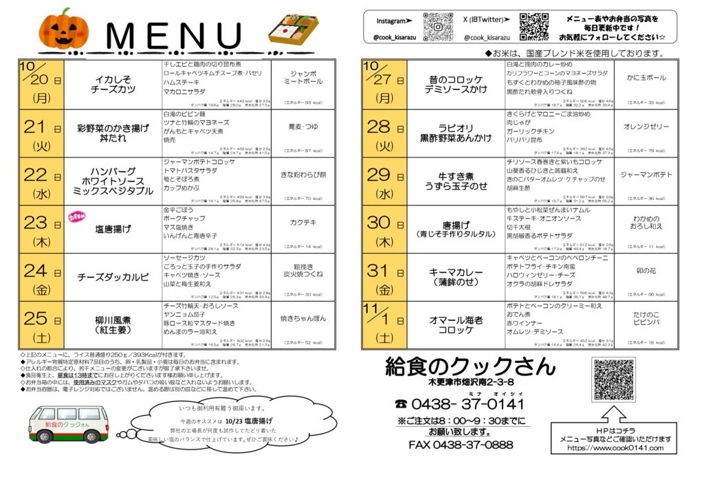 10/20(月)~11/1(土)までのお弁当メニュー!