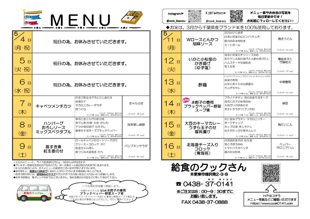 5/4(月・祝)~5/16(土)までのお弁当メニュー!