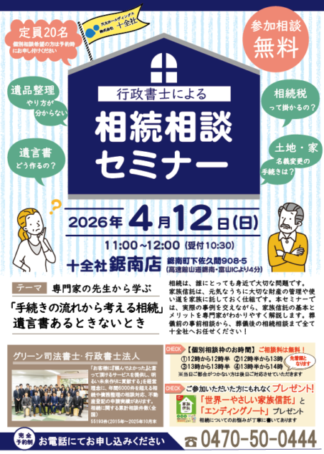 【鋸南店】相続セミナー開催します