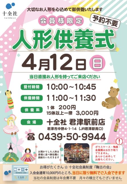 【君津駅前店】人形供養式 開催します