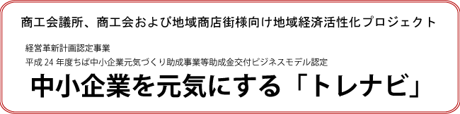 雇用の創出と拡大を企業理念とする、株式会社アスク(本社:千葉県君津市、代表取締役社長 隈元雅博)は、 疲弊した地域の経済活動を活性化させる事を目的に「トレナビ」事業を起案し、平成23年「SNSを活用したモール型地域ポータルサイトの開発およびサービス提供」 のテーマにより経営革新計画の認定を受け、更に平成24年度に「地域の商工会議所・商工会向けモール型広域地域ポータルサイト新規開発」の助成事業名として、 平成24年度ちば中小企業元気づくり助成事業等助成金交付の認定(県下では2社が認定)を受けました。平成25年度のサービス提供に向け、本事業を推進していく所存です。