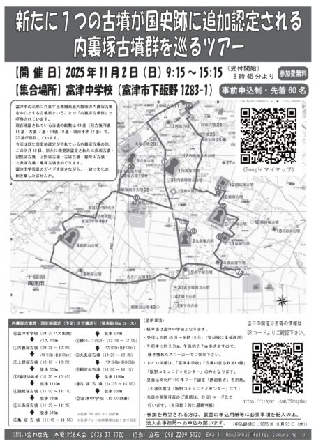トレナビTOP >> 千葉県 >> 富津市 >> 立石煙火製造所 >> 「新たに7つの古墳が国史跡に追加認定される内裏塚古墳群を巡るツアー」のお知らせ