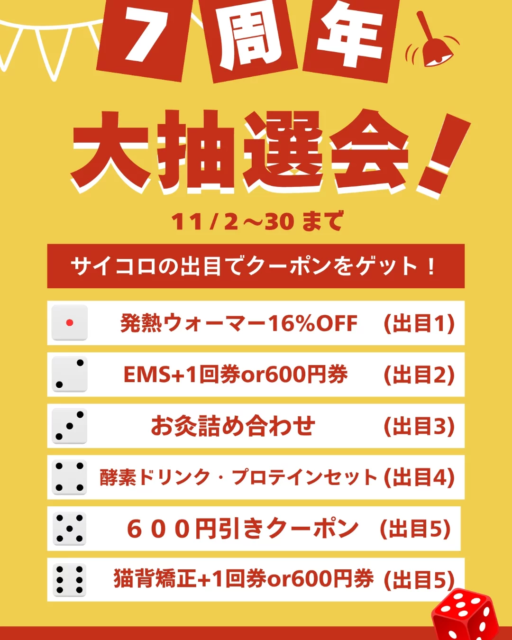 【ストレッチ鍼灸イトー整骨院】7周年感謝祭&大抽選会 開催中!