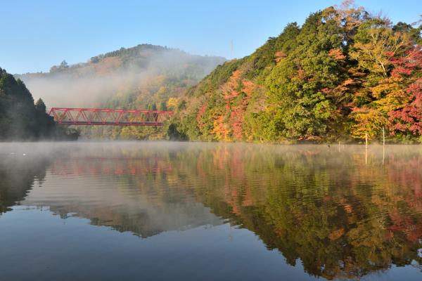 紅葉は、朝夕の気温差が大きい渓谷の「色彩の鮮やかさ」を誇り、渓谷に掛かる真っ赤な橋は全部で25本あります。