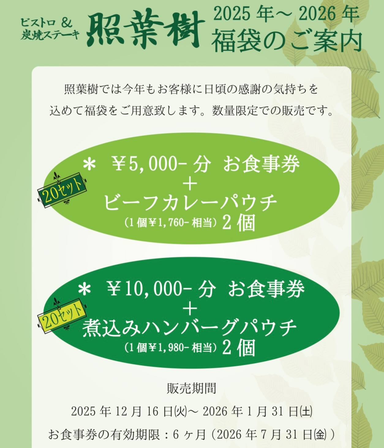 今年も照葉樹では日頃の感謝の気持ちを込めて、福袋をご用意致しました!