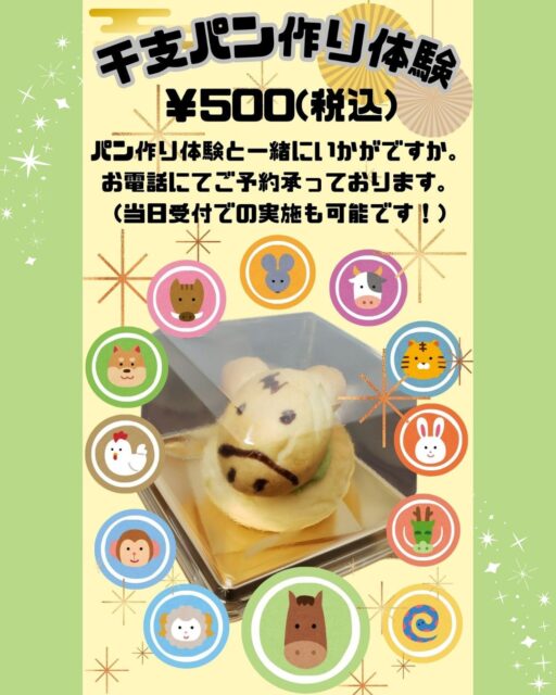 ※通常のパン作り体験と一緒に、もしくは干支パン作り体験のみも可能
