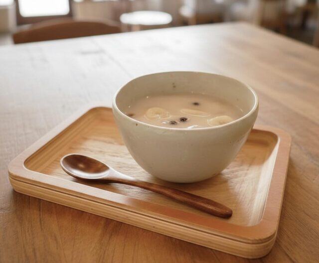 豆乳入りのもちもち白玉は、食後でも重たくならず、つるんと心地よい口あたりです。
