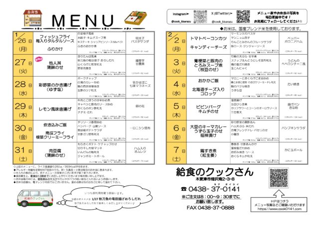 1/26(月)~2/7(土)までのお弁当メニュー!