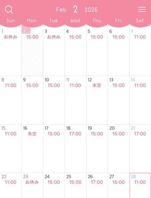 2026.2月の営業予定です。