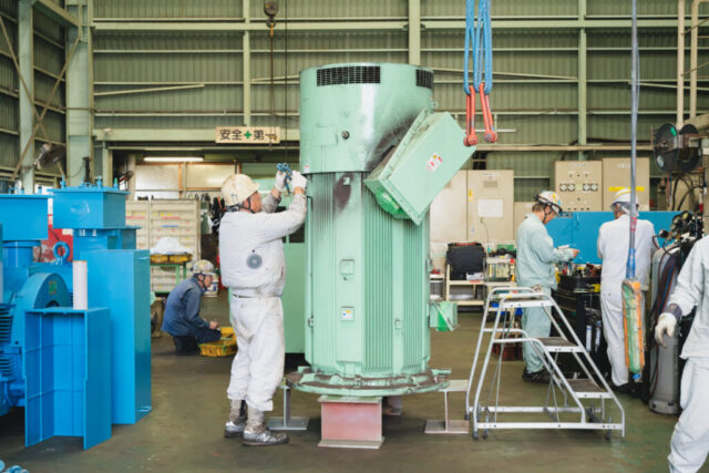主な整備には、ベアリング・部品交換、コイル巻替、 機械加工、絶縁処理などがあります。