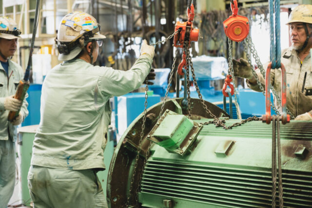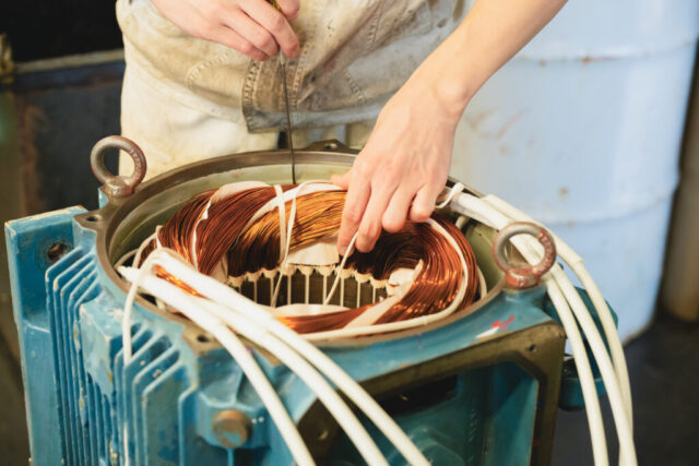 モーター(電動機)を慎重に分解して内部を点検し、状態を診断します。