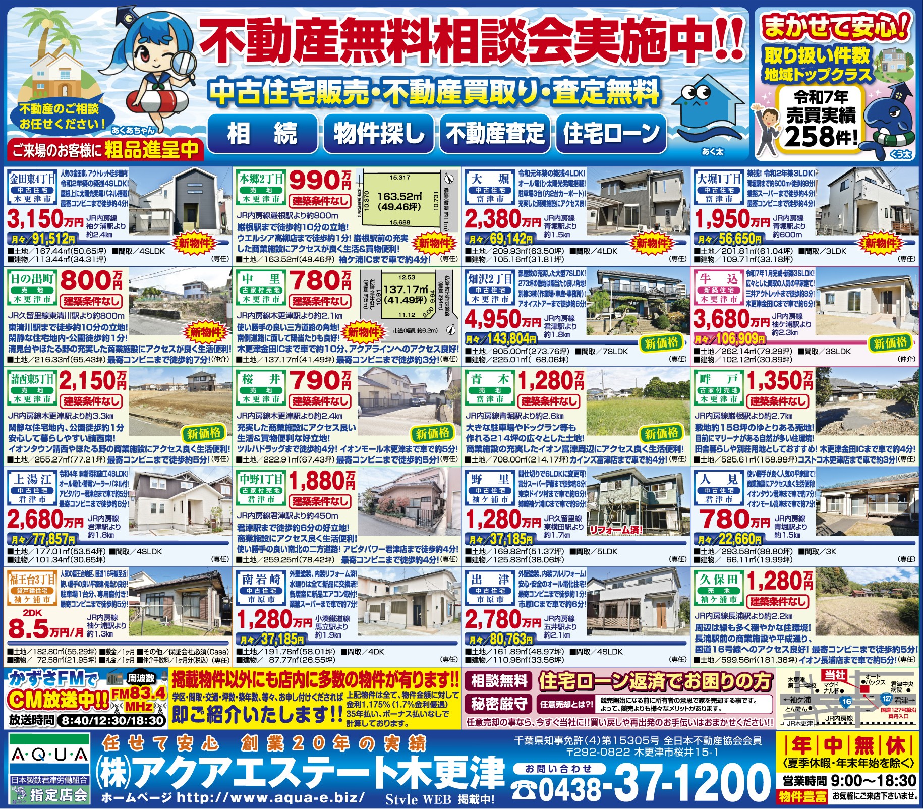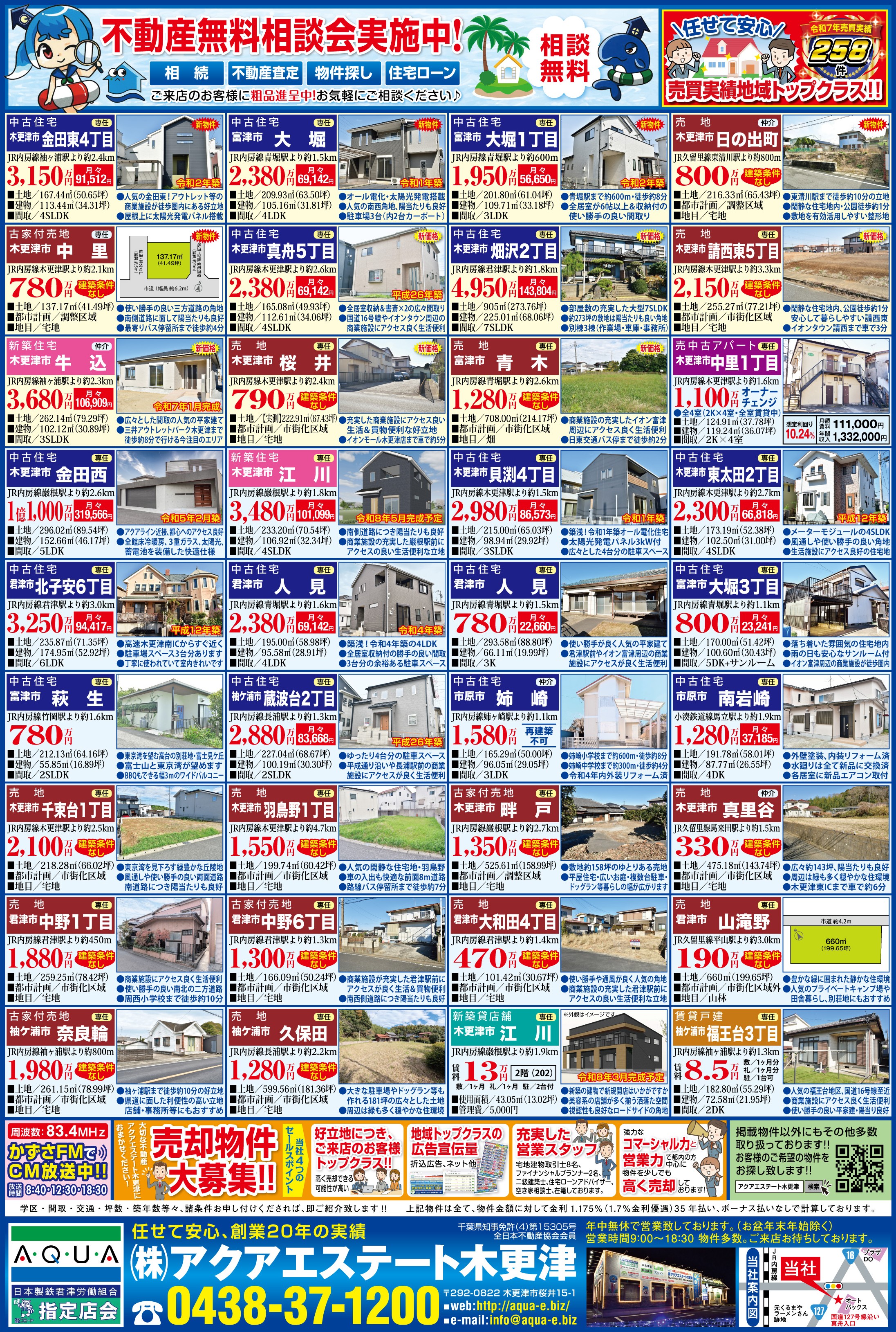 株式会社アクアエステート木更津は、木更津市、君津市、富津市、袖ケ浦市、
