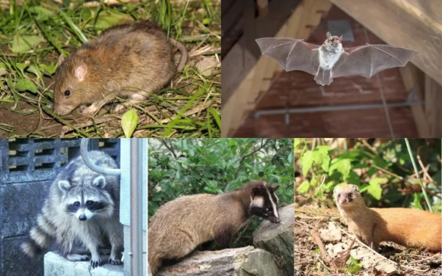 ネズミ・ハクビシン・アライグマ・イタチ・コウモリ・ハトなどの
