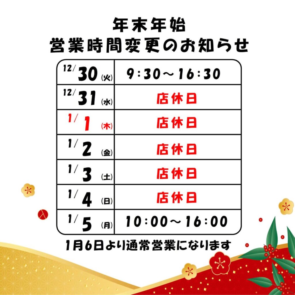 年末年始営業時間変更のお知らせ