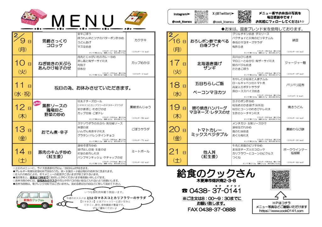 2/9(月)~2/21(土)までのお弁当メニュー!