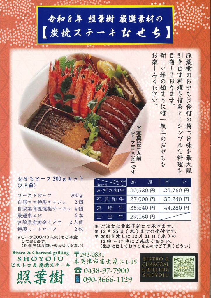 令和8年 照葉樹 厳選素材の【炭焼ステーキおせち】