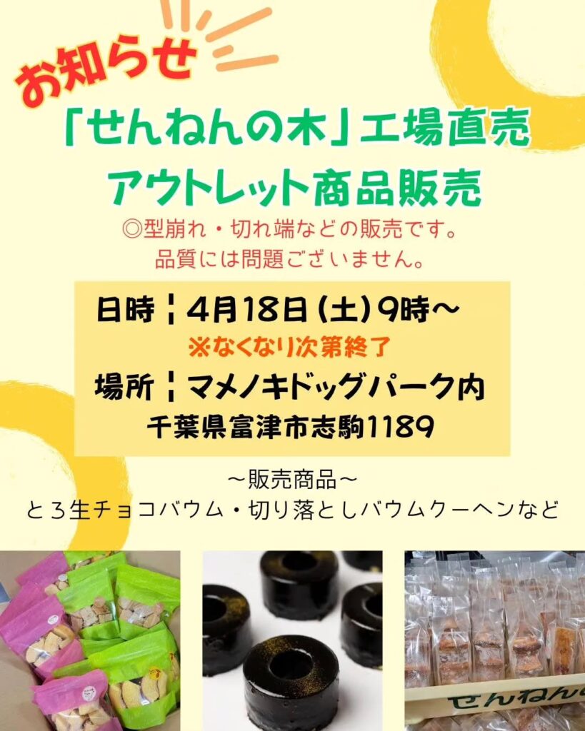 マメノキドッグパークでせんねんの木商品をアウトレット価格で販売いたします!