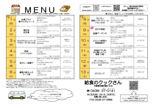12/1(月)~12/13(土)までのお弁当メニュー!