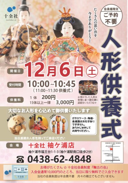 【袖ケ浦店】人形供養式 開催します