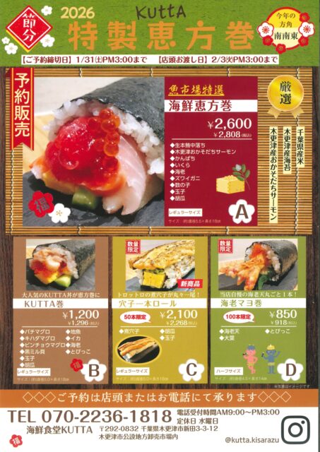 【2026年】KUTTA特製恵方巻のご予約受付中!