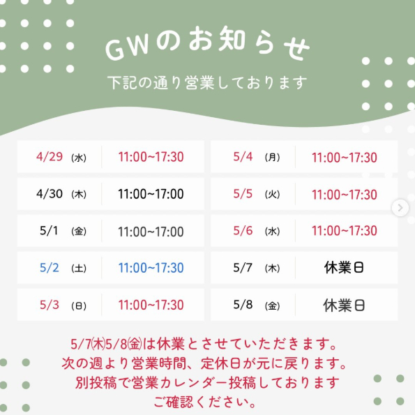【ジェラテリア風鈴堂】2026年ゴールデンウィーク日程のお知らせ