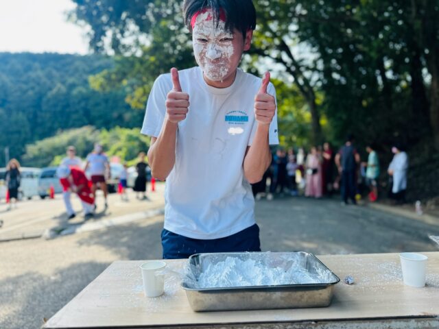 運動会の種目は、「パン食い競争」「飴食い競争」「玉入れ」「綱引き」「お玉リレー」の5つ。チームで力を合わせて競い合い、勝っても負けても楽しめます。当日、体操着で参加すると玉川温泉オリジナルサイダーのプレゼントも!