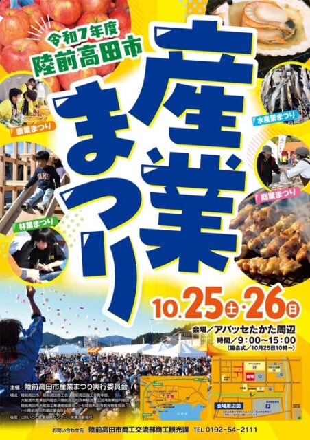岩手県陸前高田市の中心エリア・アバッセたかた周辺で、10月25日(土)・26日(日)の2日間、「陸前高田市産業まつり2025」が開催されます。