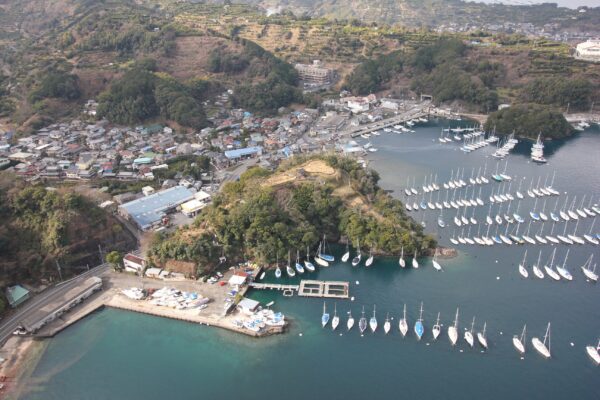 伊豆長浜城は、戦国時代に北条水軍の拠点として築かれた海城。曲輪や堀切などの防御構造が良好に残り、全国的にも珍しい海辺の城郭として高く評価されています。2015年の史跡公園開園以来、地域の歴史を伝える場として親しまれてきました。