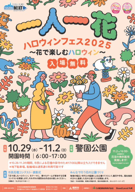 公式サイト:https://www.city.fukuoka.lg.jp/chuoku/ijikanri/charm-kankou/hitorihitohanahalloweenfes2025.html