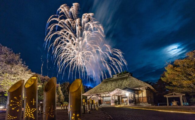 会場では、宮城・山形・福島のコーヒー専門店が出店する「古民家で珈琲日和」や、キッチンカーのグルメ販売、手持ち花火体験(特設エリア限定・持ち込み不可)などを実施。さらに、11月8日(土)には約15分間の打ち上げ花火、8日・9日には音楽ライブも予定されています。秋の夜風を感じながら、光と音、香りが織りなす特別なひとときを楽しめます。