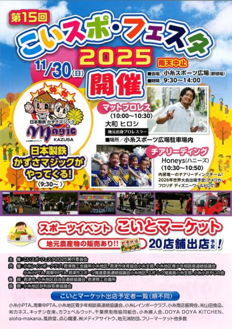 千葉県君津市で、地域のスポーツと交流を楽しむ恒例イベント「第15回こいスポ・フェスタ2025」が開催されます。