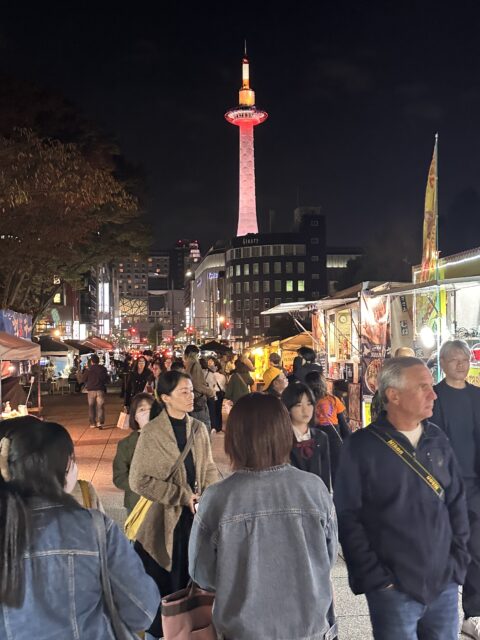 紅葉が見頃となる11月22日・23日の夜、東本願寺前のお東さん広場で「京都夜市」が特別開催されます。会場には60店を超える屋台やキッチンカー、クラフト作家が並び、京都最大級のナイトマーケットとしてにぎわいを見せます。大道芸や絵付け体験、人力車体験など、観光客から家族連れまで楽しめるコンテンツが揃い、ゆっくり歩きながら秋の夜を味わえるイベントです。