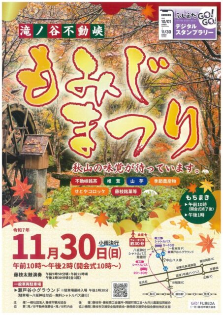紅葉の名所と地域の味覚がひとつに集まり、秋の藤枝らしさを存分に感じられるイベントです。