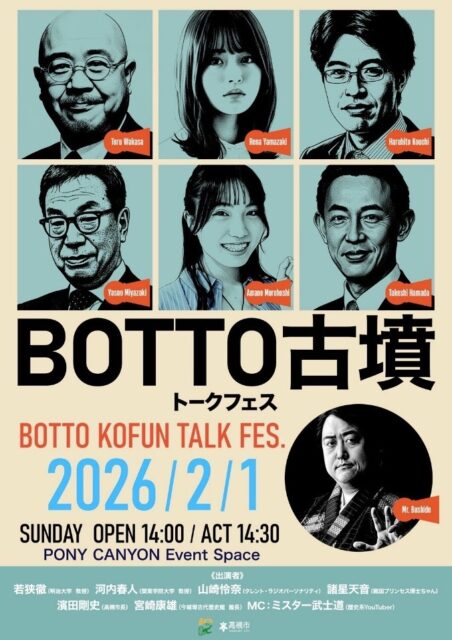 国指定史跡「今城塚古墳」と、真の陵墓とされる「継体大王」をテーマにしたトークイベント「BOTTO古墳トークフェス」が、2026年2月1日、東京都で開催されます。