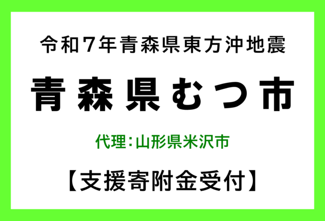 【米沢市ふるさと納税】青森県むつ市を支援する「令和7年12月青森県東方沖地震」代理寄附の受付を開始・山形県米沢市