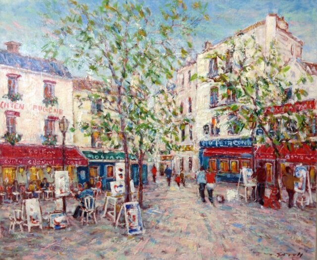 佐藤隆春 新春特別展2026 テルトル広場の赤いカフェ F20号