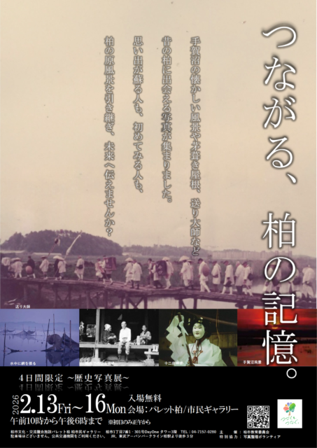千葉県柏市で、毎年恒例の歴史写真展「つながる、柏の記憶。」が開催されます。会場は、柏駅前にあるパレット柏・柏市民ギャラリー。地域に受け継がれてきた風景や暮らしを写した写真を通して、柏の原風景にふれる展示です。