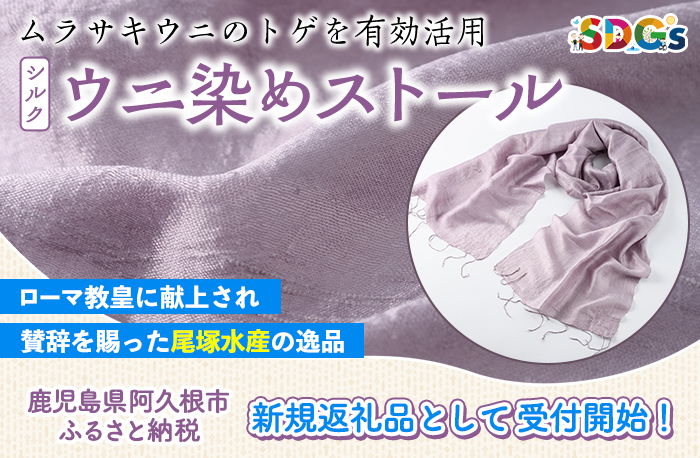 鹿児島県阿久根市のふるさと納税に、環境への配慮から生まれた特別な返礼品「ウニ染めストール」が登場しました。
