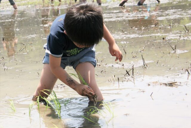 体験では、最高峰ブランドとして知られる「南魚沼産コシヒカリ」の苗を、実際の田んぼで手植え。泥だらけになりながら行う作業は、普段なかなかできない貴重な経験です。子どもたちにとっては、食や農業への理解を深めるきっかけにもなります。