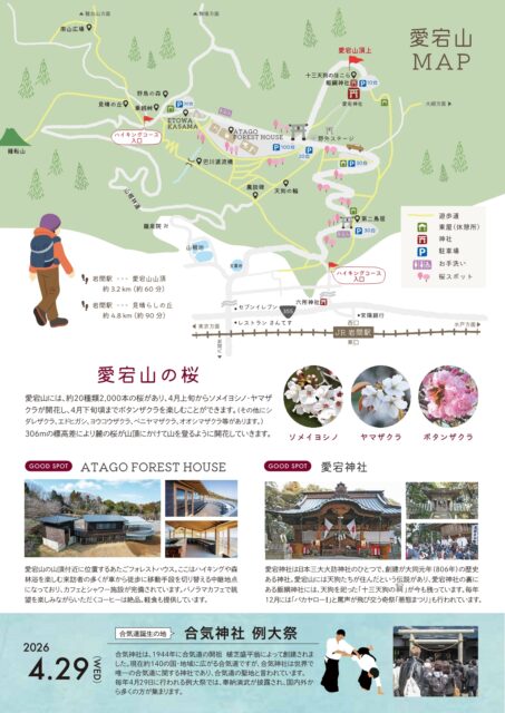茨城県笠間市の愛宕山で、「あたご山桜まつり」が開催されます。標高306mの山を舞台に、約20種類・2,000本の桜が麓から山頂へと順に咲き上がり、山全体が淡いピンクに染まる絶景が広がります。夜にはライトアップも行われ、幻想的な夜桜も楽しめます。期間中の週末には太鼓やジャズ演奏、ワークショップ、キッチンカーなども登場し、春のお出かけに彩りを添えます。