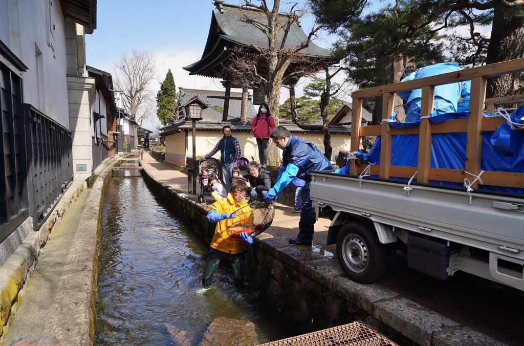 春の訪れを告げる風物詩「瀬戸川の鯉の引っ越し・岐阜県飛騨市