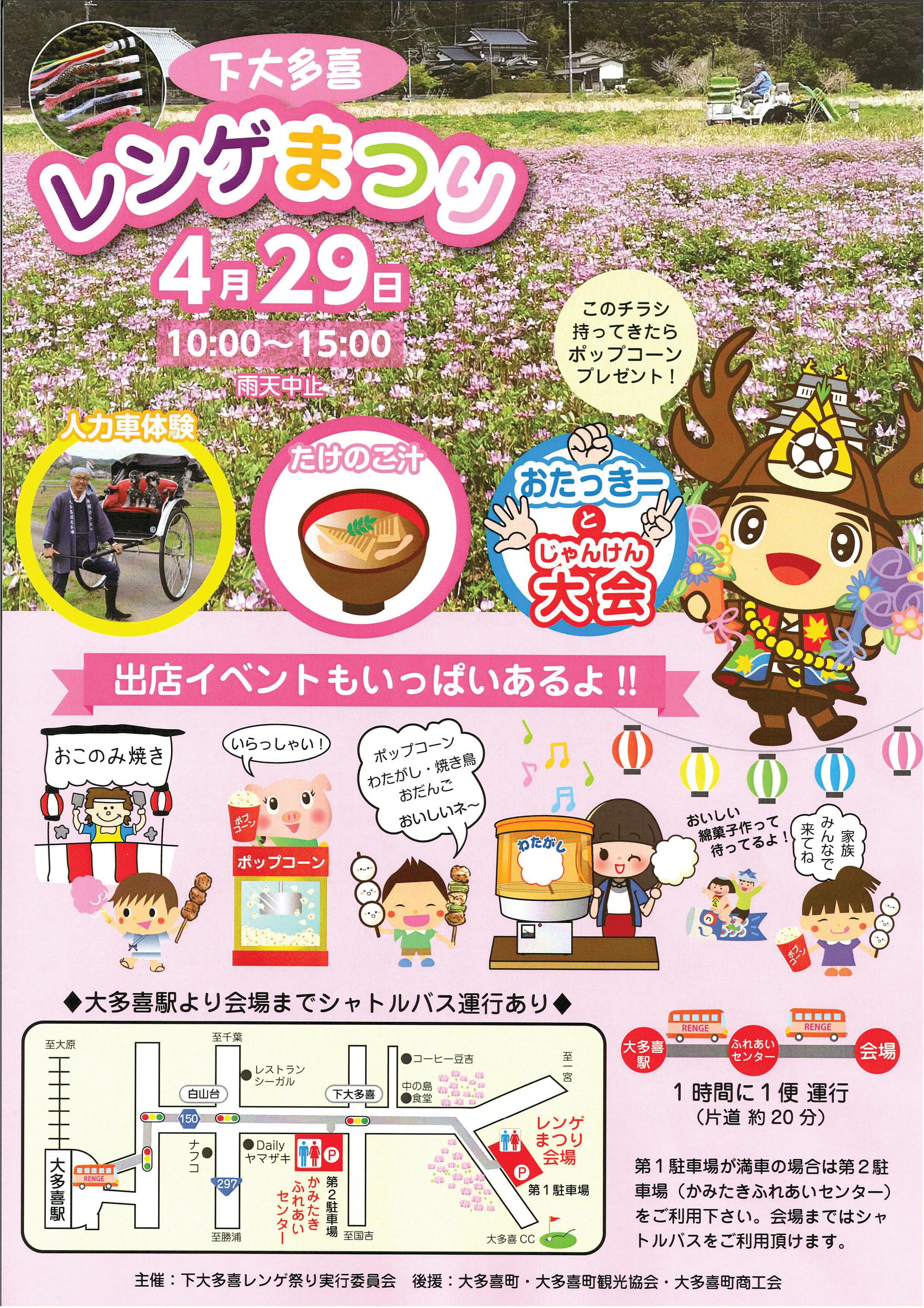 内容:レンゲ畑の観賞、人力車体験、ふれあいイベント、飲食販売 ほか