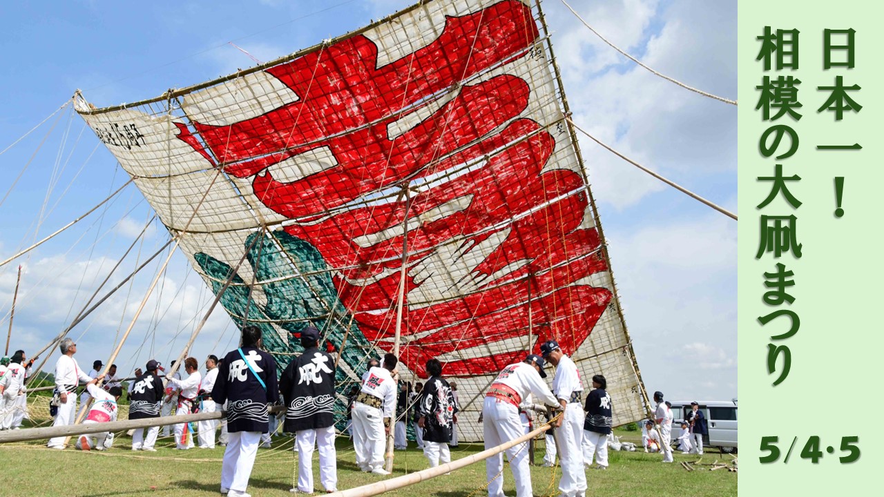 約190年の歴史を誇る伝統行事「相模の大凧まつり」が、相模川の河川敷で開催されます。14.5メートル四方・重さ約950kgという日本最大級の大凧が、80人以上の手で引き上げられ、大空へと舞い上がる光景は圧巻。もともとは子どもの誕生を祝う風習から始まり、今では地域の願いや想いを乗せた風物詩として親しまれています。初夏の青空のもと、迫力ある伝統のひとときを体感してみてはいかがでしょうか。