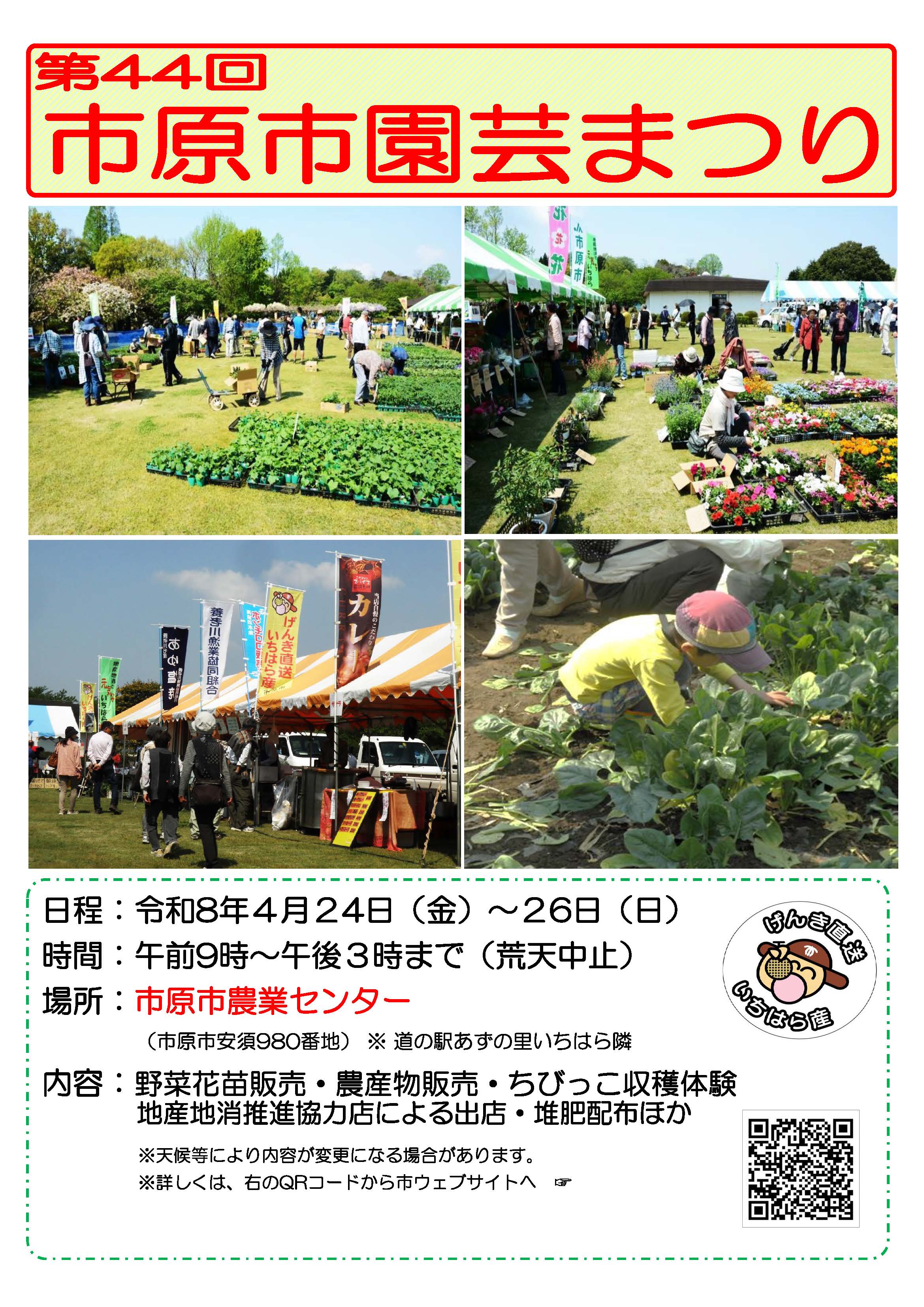 千葉県市原市の市原市農業センターにて、「第44回市原市園芸まつり」が開催されます。市内の農家が育てた新鮮な野菜や花苗、農産加工品が並び、地元の魅力をたっぷり味わえるイベントです。地産地消をテーマにした飲食ブースも登場し、旬の味覚を楽しめます。