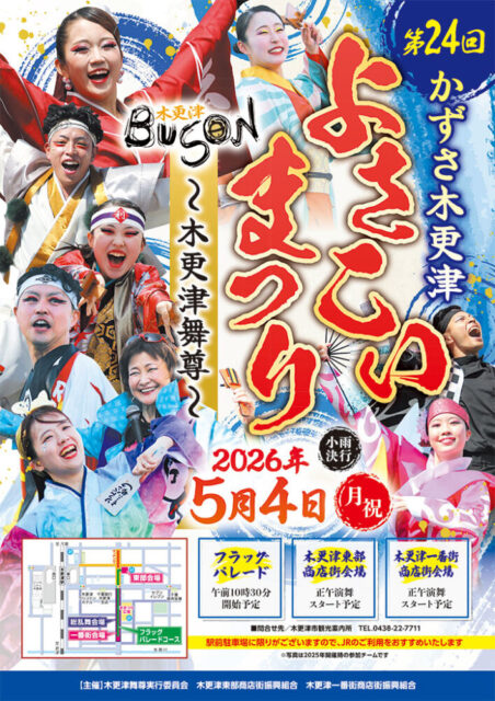 地域の活性化を目的にスタートした本イベントは、回を重ねるごとに“よさこいの力”で街を元気にしてきました。2026年は名称を新たにし、「日本でいちばん元気な場所」をテーマに開催。かずさ地域4市や地元学生、商店街、ボランティアが一体となり、さらにパワーアップした内容が期待されます。