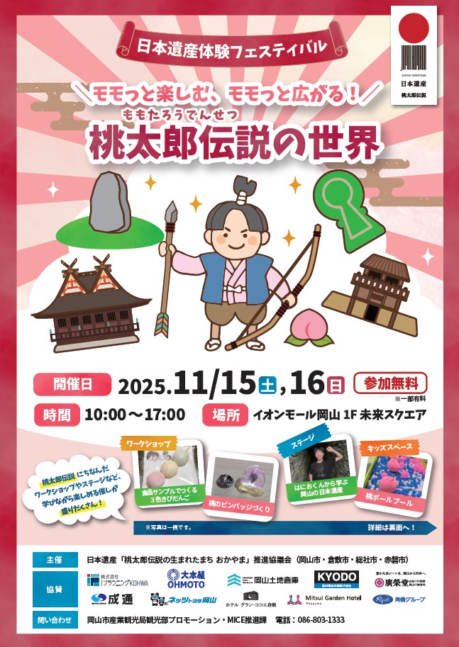 桃太郎伝説の世界へ―日本遺産体験フェスティバル「モモっと楽しむ、モモっと広がる!」開催・岡山県岡山市
