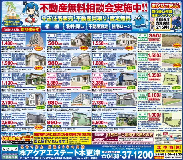 株式会社アクアエステート木更津は、木更津市、君津市、富津市、袖ヶ浦市