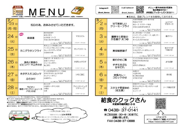2/23(月・祝)~3/7(土)までのお弁当メニュー!